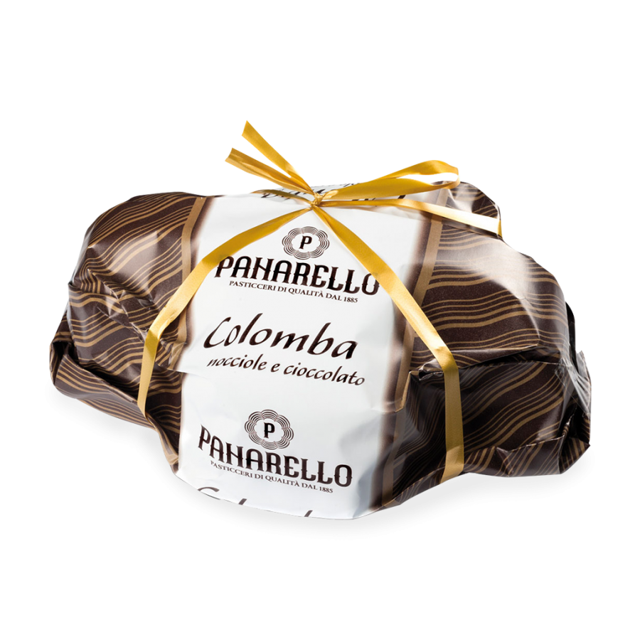 La classica Colomba Panarello, dalla lavorazione lenta e con ingredienti freschi e di prima qualità, dal 2001 viene preparata anche nella versione al cioccolato: senza canditi, guarnita in superficie con nocciole intere e arricchita di gocce di cioccolato nell’impasto.