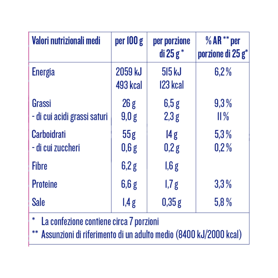 Ingredienti: patate, oli vegetali (palma, girasole alto oleico), sale marino. Può contenere latte, sedano e senape.