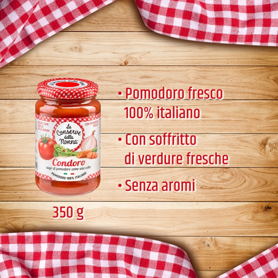 Pronta all'uso da versare direttamente sulla pasta o come base ideale per ragù o sughi ricettati