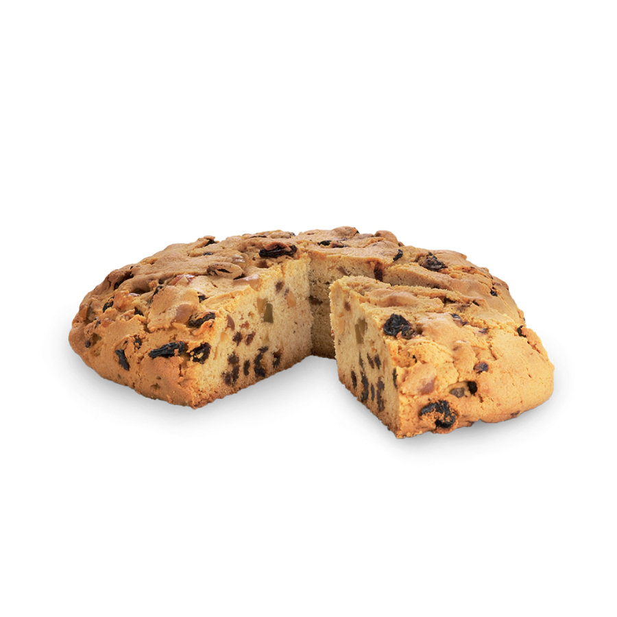 PRODOTTO DOLCIARIO DA FORNO Farina di frumento, uva sultanina, burro, zucchero, latte parzialmente scremato, scorza di arancia candita (scorzone d’arancia, zucchero, sciroppo di glucosio), cedro candito (cedro, zucchero, sciroppo di glucosio, antiossidante: anidride solforosa), tuorlo d’uovo zuccherato (tuorlo d’uovo, zucchero), nocciole, marsala, agenti lievitanti (difosfato disodico, carbonato acido di sodio), amido di frumento, pinoli. Può contenere: soia, arachidi, altra frutta a guscio.