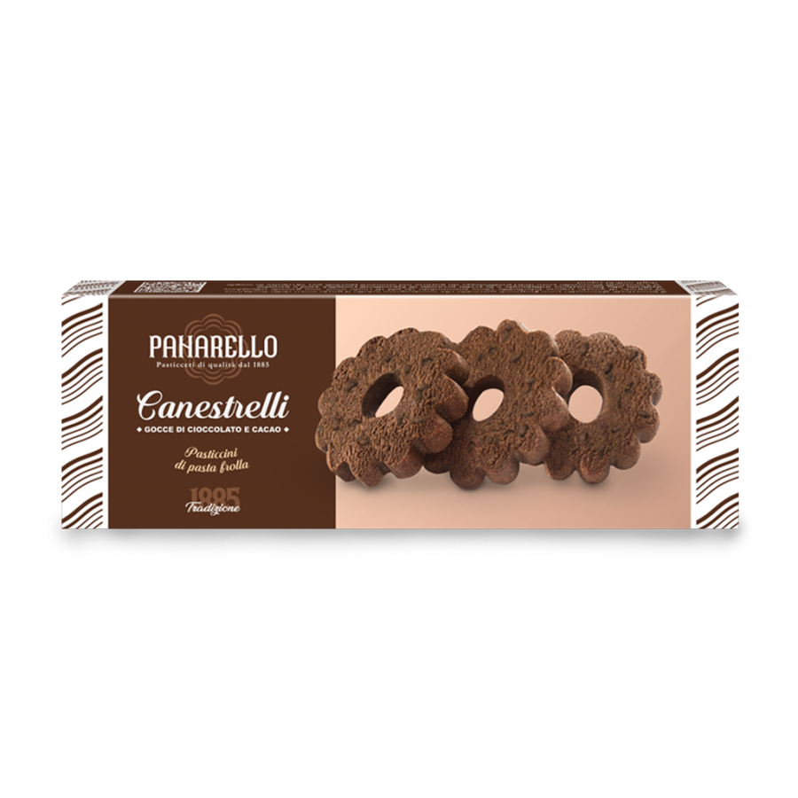 Il gusto e la fragranza di un grande classico di pasticceria si riscoprono in una vera golosità firmata Panarello. I Canestrelli gocce di cioccolato e cacao, realizzati nel rispetto della ricetta tradizionale, utilizzando solo ingredienti genuini e arricchendo l'impasto con prelibato cacao, sapranno conquistare anche i palati più golosi!