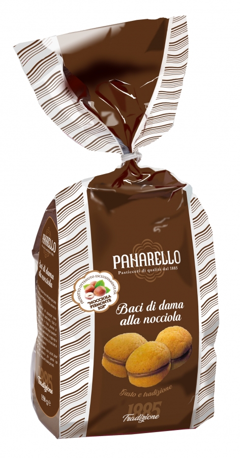 I Baci di Dama Panarello sono raffinate specialità artigianali che rappresentano la dolce unione fra gusto e tradizione. Da sempre conosciuti ed apprezzati come simbolo della buona arte pasticcera, i Baci di Dama Panarello sono il frutto prezioso di un'antica ricetta. Alla semplicità degli ingredienti, tutti naturali, genuini e selezionati, si aggiunge la ricchezza di una delicata farcitura al cioccolato, in un dolce abbraccio di sapore. I Baci di Dama Panarello sono piccoli piaceri quotidiani che rendono più grande ogni occasione e ogni momento della giornata. Prodotto dolciario da forno.