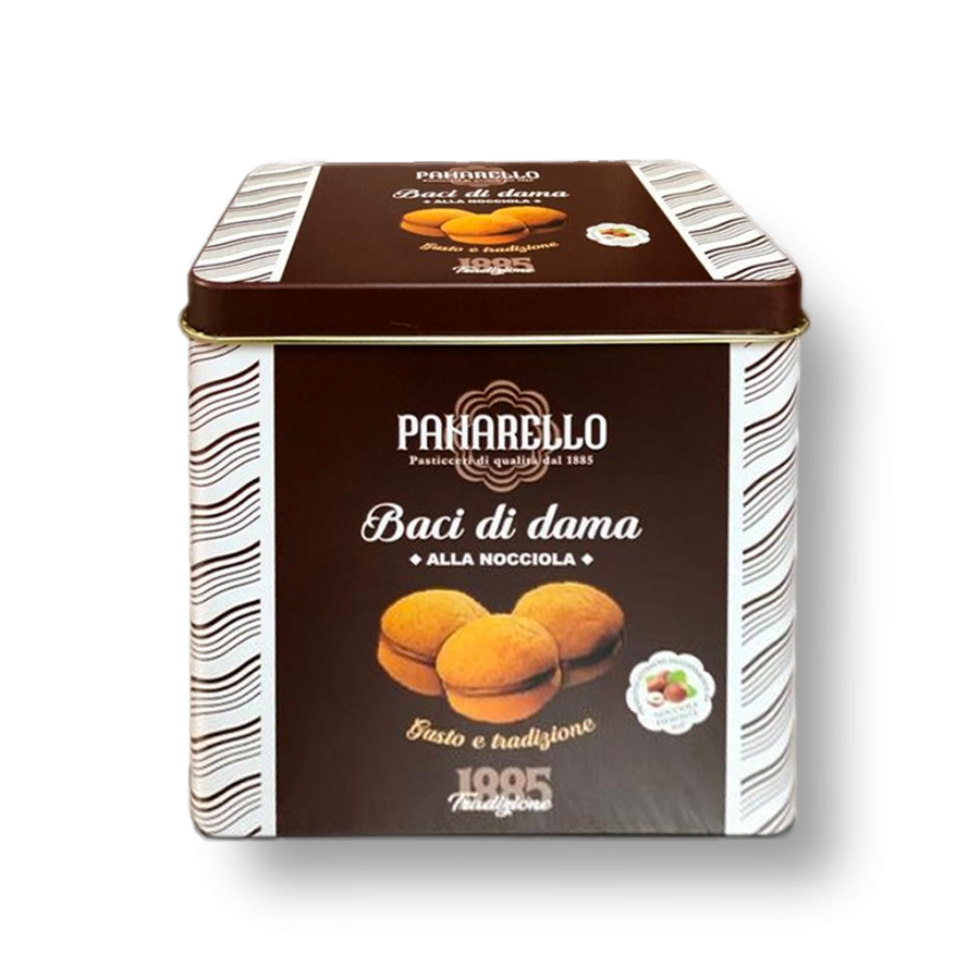 I Baci di Dama Panarello sono raffinate specialità artigianali che rappresentano la dolce unione fra gusto e tradizione. Da sempre conosciuti ed apprezzati come simbolo della buona arte pasticcera, i Baci di Dama Panarello sono il frutto prezioso di un'antica ricetta. Alla semplicità degli ingredienti, tutti naturali, genuini e selezionati, si aggiunge la ricchezza di una delicata farcitura al cioccolato, in un dolce abbraccio di sapore. I Baci di Dama Panarello sono piccoli piaceri quotidiani che rendono più grande ogni occasione e ogni momento della giornata. Prodotto dolciario da forno.