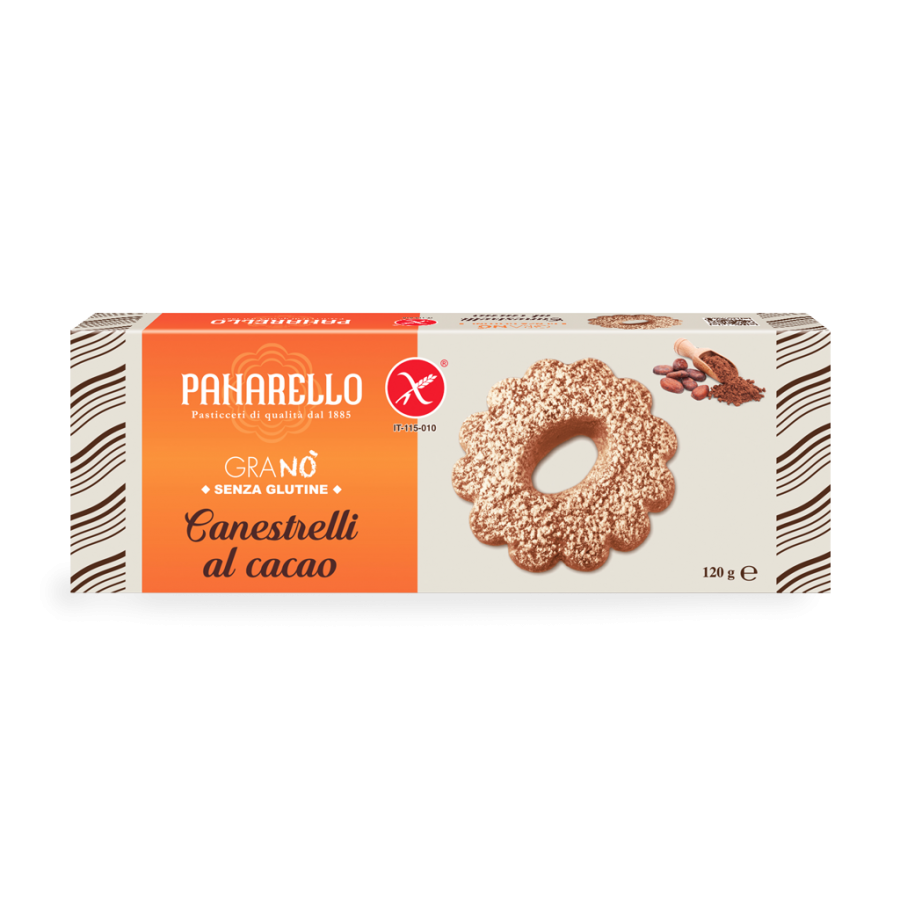 Il gusto e la fragranza di un grande classico di pasticceria si riscoprono in una vera golosità firmata Panarello: i Canestrelli al cacao senza glutine sono realizzati nel rispetto della ricetta tradizionale, utilizzando solo ingredienti genuini e arricchendo l’impasto con prelibato cacao. I Canestrelli al cacao senza glutine sapranno conquistare anche i palati più golosi!