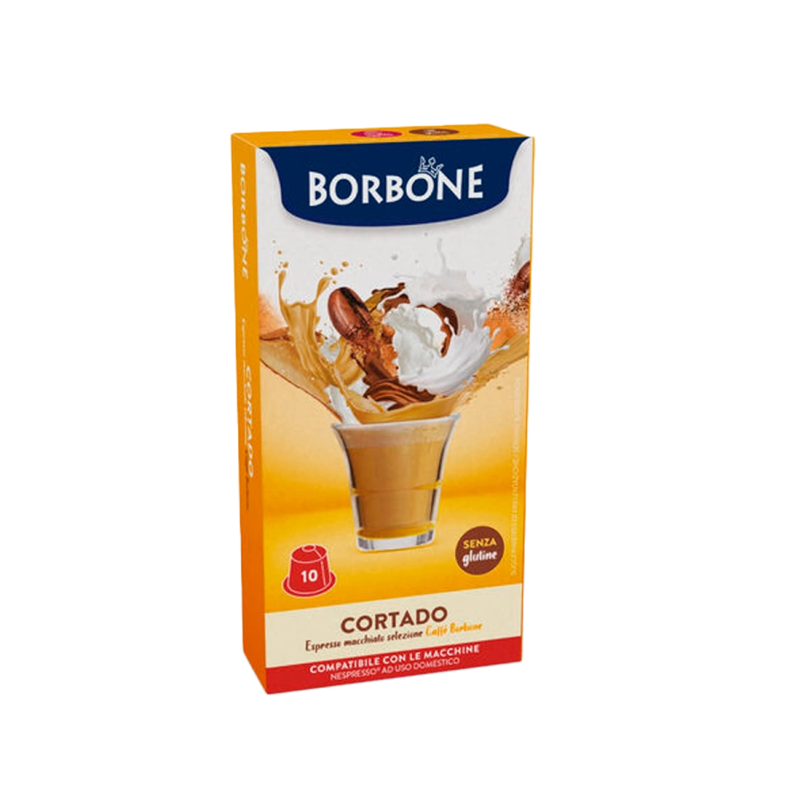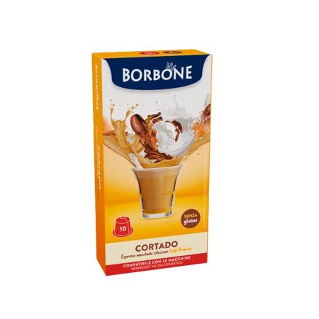 10 capsule Borbone Cortado, per un delizioso caffè macchiato, compatibili con macchine ad uso domestico Nespresso®*. Le capsule compatibili Borbone Cortado fanno parte della linea Capriccio, la più sfiziosa delle 4 nuove linee di bevande aromatizzate in capsula “Nuove emozioni di gusto”, dedicata a chi vuole gustare una pausa diversa dal solito, ma sempre golosa.